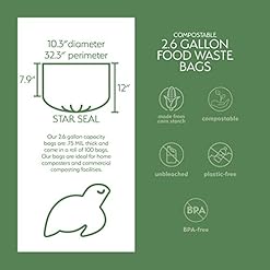 MATERIALS: 100% compostable, biodegradable disposable kitchen trash bags. All Earths Natural Alternative garbage bags are BPI Certified compostable, meet ASTM D6400, D6868 standards. Forty-five days to fully compost at municipal and industrial composting facilities; home composting time may vary from home to home. Earth Natural’s premium compostable food waste bags are made from quick-growing, sustainable, and renewable vegetable starch like corn starch