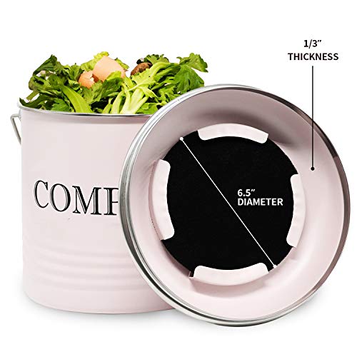 【No Smells & 8 Free Charcoal Filters】: This compost container is supplied with a airtight lid which stop food scraps spilling out and stay any stray smells from getting out. Built-in tight-fitting activated charcoal filter out at five” in diameter for soaking up and trapping odors and leaving your kitchen smelling recent and clean. Bonus set of 8PCS filters within the pail for long term 1-year use.