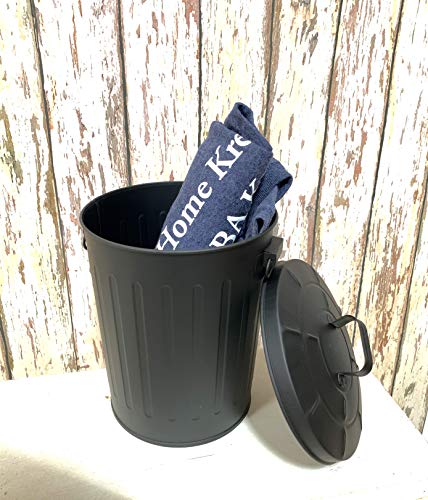 Kraft Klub, Inc. Small Trash Can Black Enamel with Lid; 7 Inches High by 6.5 Inches Wide