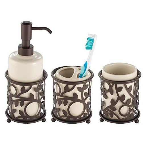 FUNCTIONAL & VERSATILE: The organic design works well in large or smaller bathrooms, use all the pieces together in master or family bathrooms, use pieces individual for half and smaller guest bathrooms; The pump can be used in the kitchen, laundry room or next to any sink; Create a fashionable storage container for makeup brushes and other beauty tools using the cup; The toothbrush holder is also great for beauty tools – hold eyeliner, lip pencils, lip glosses, orange sticks and nail files