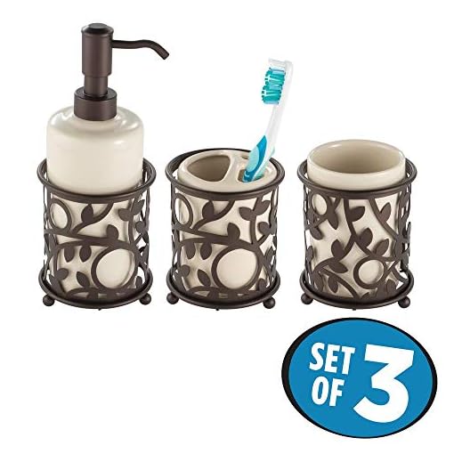THOUGHTFULLY SIZED: Soap Dispenser Measures 3.five” diameter x 8.seventy five” top; Holds 13 oz; Toothbrush Stand Measures 3.five” diameter x four” top; Tumbler Measures 3.five” diameter x 4.five” top