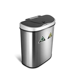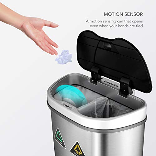 NINESTARS Automatic Touchless Infrared Motion Sensor Trash Can/Recycler with D Shape Silver/Black Lid & Stainless Base…