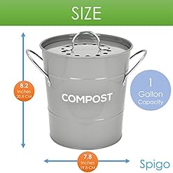 ✔ HIGH GRADE MATERIALS made of STAINLESS STEEL exterior this compost bin is durable and won’t rust, scratch or chip and can be easily cleaned. It attractive finish complements most any decor while still providing durability and rust free so that this can last as your favorite compost bin for a very long time. BUCKET CAPACITY: .93 Gallons, 3.72 Quarts, or 14.66 Cups. MEASUREMENTS WITHOUT HANDLES: 8.2X7.8 Inches, WITH HANDLES: 9.5×10 Inches.