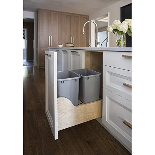 Rev-A-Shelf 4WCSC-1835DM-2 Double 35-Quart Maple Bottom Mount Kitchen Pullout Waste Container Trash Can with Blumotion…