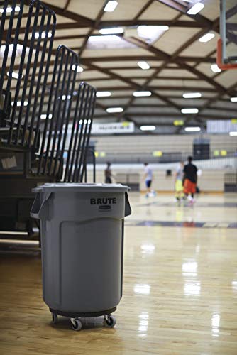 Rubbermaid Commercial BRUTE Trash Can Flat Lid, Round, Gray, 55 Gallon, FG265400GRAY