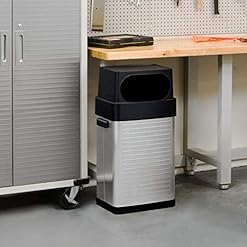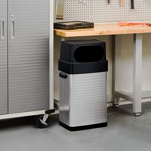 REMOVABLE WIDE-MOUTH LID – Throw trash into the 12″ wide mouth opening and keep smells and hazardous materials out of reach. Top is made of heavy-duty plastic resin and is easily removable.