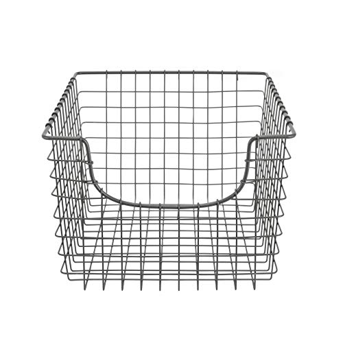 STORE A VARIETY OF ITEMS: Sturdy steel with smooth welds makes this basket appropriate for a variety of items. Slide a basket full of scarves or hats onto your front closet’s shelf, keep bath accessories nearby with open storage, or tidy up your pantry by storing all your snacks inside. The durable construction and stylish design make this basket appropriate for storage in any room—from the kitchen to the garage.