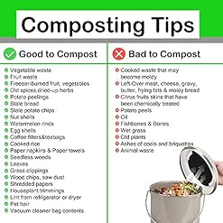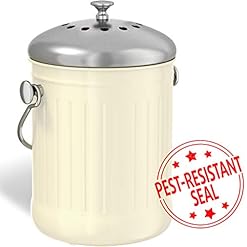 COMPOSTING AT HOME has never been easier with this countertop compost bin. Simply pile food waste into our kitchen compost bucket and secure the lid between uses. The in-lid charcoal filter keeps your compost container odor & fly free until emptied on the outdoor compost pile