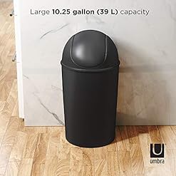 Umbra Grand 10-Gallon Swing-Top Trash Can, Black